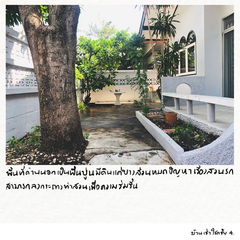 House for rent 50 Sqw with parking space in the house. 3 bedrooms, 2 bathrooms, 2 air conditioners, water heater, living space, plus a big space for gardening and BBQ. High roof, well-ventilated, and bright with natural light. It's just opposite Paolo Hospital Chokchai 4 and only 100 meters away from the main street of Chokchai 4 but quiet of the neighborhood. Public transportation is available at all times. Located in a very good location, very closed to many famous restaurants and street foods, stylish cafe-coffee shop, convenience stores, supermarkets, a department store. A new train line is under construction (yellow line) which will be finished by this year (2021) and it's just 4 mins by car / 10 mins by foot from the house to the station. Pet allowed. Short term rental is welcome! (Different rental fees)